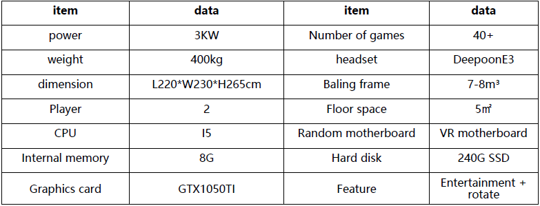 360 VR simulator is a dynamic extreme experience device with full movements. Real-time simulation of the action scene of the game content through dynamic control technology simulation, matching 360° rotation, rapid rise, dive and other motion postures, and at the same time loaded with physical blowing special effects, making the experiencer feel as if they are on the scene. It is a novel, realistic and exciting experience projects.