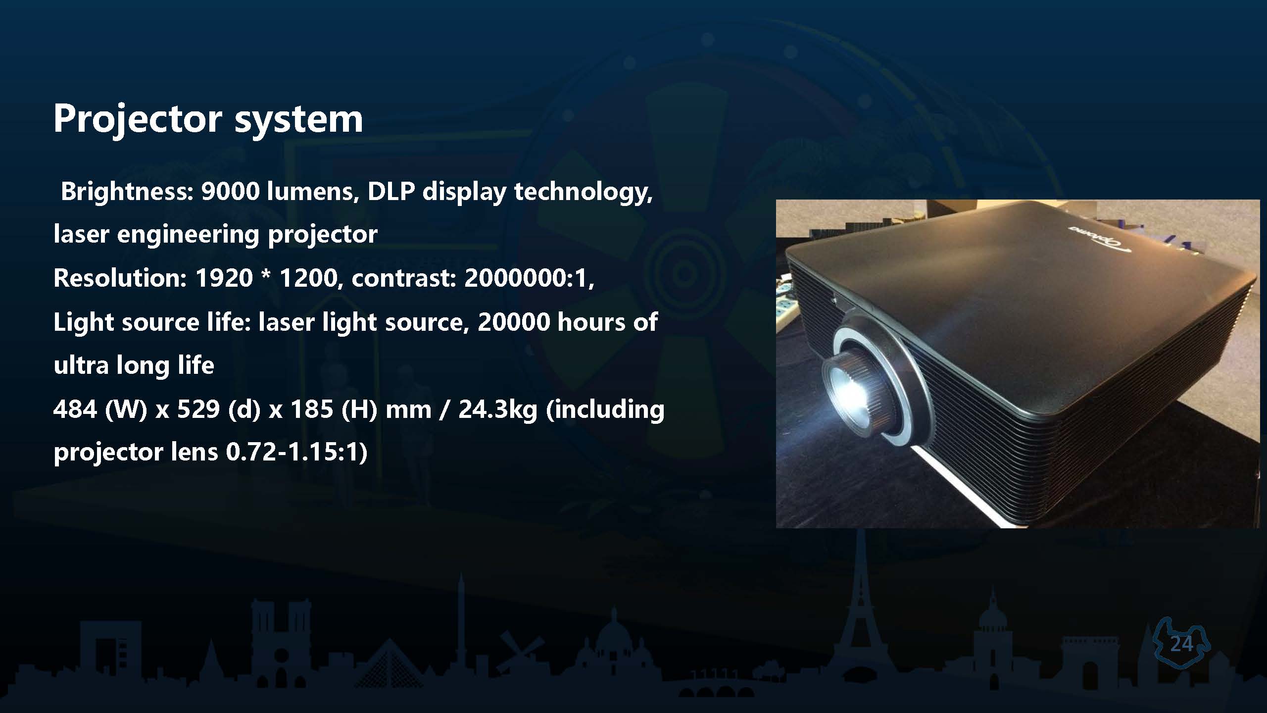 Among which laser projectors and engineering laser projectors are common choices. In addition, there are media systems, including fusion systems and playback systems. The fusion system is divided into hardware fusion and software fusion.The prices of different projectors vary greatly. We usually use engineering projectors for dome theaters. Of course, we provide cost-effective projector solutions based on the brightness of your venue, target requirements and budget.