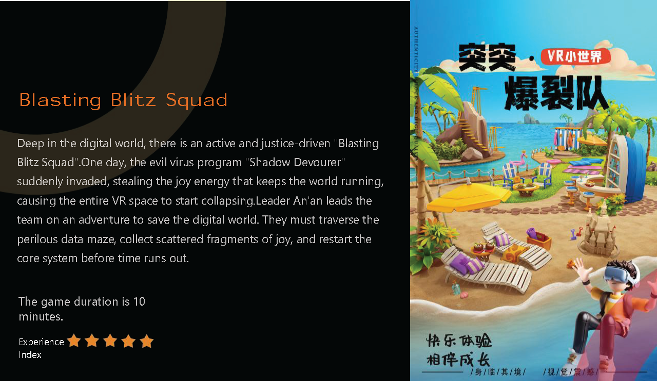 This is a team-based VR Arena game where each player holds a gun simulator. There are also switches on doors, buttons on elevators, and more, allowing players to experience a variety of interactive experiences.